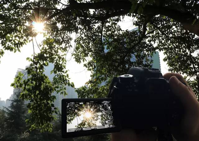 3.借用树叶遮挡一部分,可以让星芒更明显。如果没有遮挡,直接拍摄如果没有云层很难拍出太阳的星芒效果。